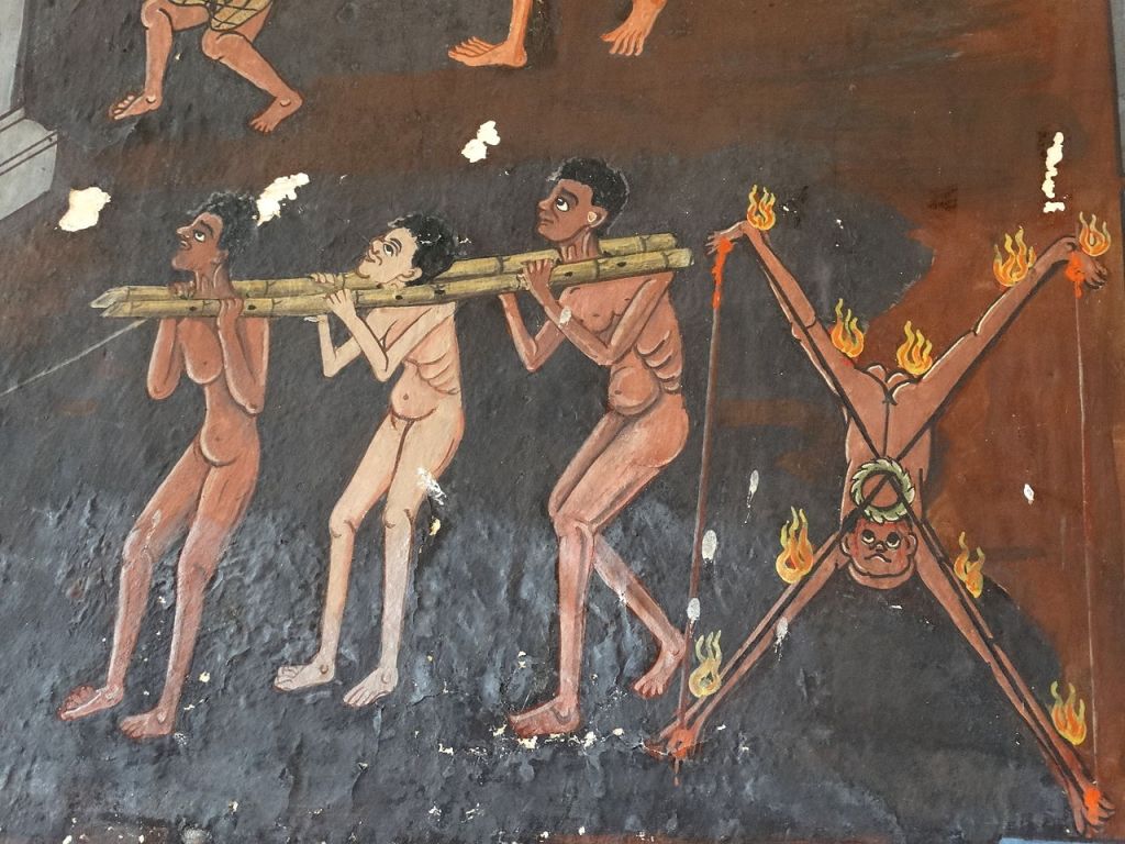 Catholicism has a long tradition of describing the ineffable through art and architecture. Statues and stained glass windows made the most difficult abstractions concrete for peasant and nobleman alike. The cathedral’s stout buttresses proclaimed Christ’s enduring triumph while the great ceilings gave a shadowy glance of His Kingdom. We have frequently spoken of “Hellfire” and our images of hell typically feature flames wherein monstrous demons torment burning sinners. They are often contrasted with the virtuous dead who float about on clouds amidst angels. Like the cathedral, these metaphors offer simple and concrete ways of grasping toward deeper and far more complicated truths.